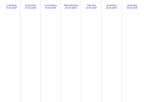 Planen Sie Ihr Jahr 2027 effizient und übersichtlich mit unserem DIN A4 Wochenkalender! Jede Seite zeigt eine komplette Woche von Montag bis Sonntag auf einen Blick, sodass Sie Ihre Termine, Aufgaben und Notizen optimal organisieren können. Mit ausreichend Platz für jeden Tag behalten Sie jederzeit den Überblick über Ihre Woche.