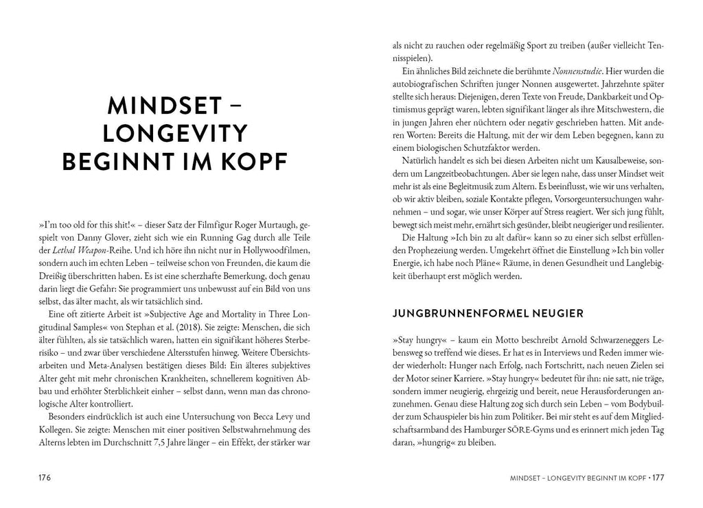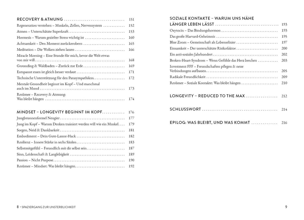 Doch statt die Erkenntnisse dieser Gespräche in Tabellen zu pressen oder in dogmatische Biohacks zu verwandeln, macht Behrens etwas Ungewöhnliches: Er nimmt die Leser:innen mit durch die großen Themen der Langlebigkeitsforschung – Bewegung, Ernährung, Schlaf, Prävention, mentale Gesundheit, soziale Bindungen – ohne die überhöhten Versprechen der Szene, aber mit dem nötigen Staunen für die echten Fortschritte.