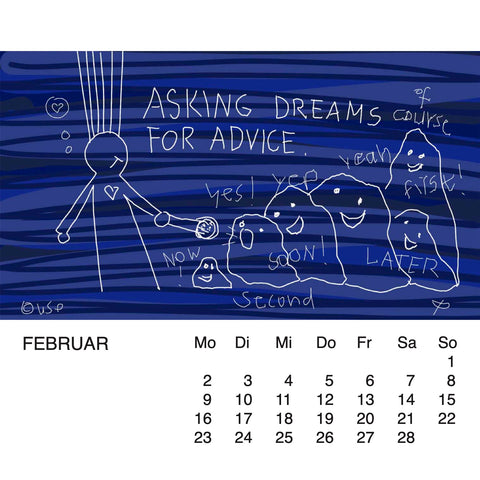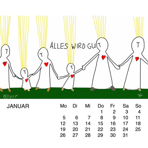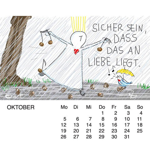 • Dank der wechselnden Farbgebung der Zeichnungen erhalten Wohnung, Haus, Büro, Garage oder wo der Kalender sich auch immer aufhalten wird, monatlich einen neuen Farbtupfer.